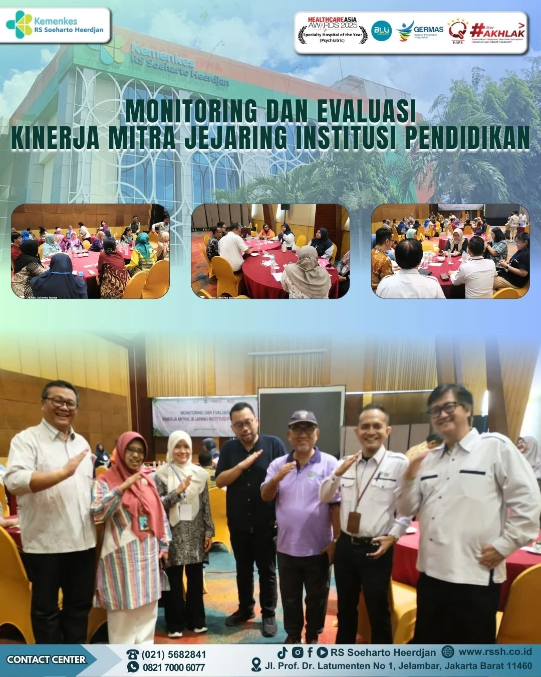 Jakarta, 30 Oktober 2025 — Rumah Sakit Soeharto Heerdjan menggelar kegiatan Monitoring dan Evaluasi (Monev) Kerja Sama Mitra Pendidikan yang dilaksanakan pada hari Kamis, 30 Oktober 2025, bertempat di Balroum Hotel Ciputra Jakarta Barat.