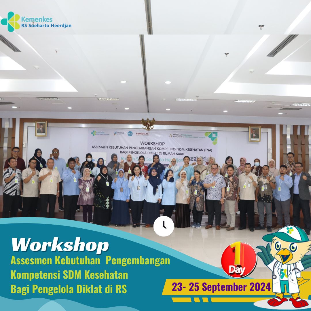 RS Soeharto Heerdjan kembali menunjukkan komitmennya dalam meningkatkan kualitas layanan kesehatan melalui penyelenggaraan workshop bertajuk Assesmen Kebutuhan Pengembangan Kompetensi SDM Kesehatan. Workshop ini dilaksanakan selama 3 hari mulai tanggal 23 s/d 26 September 2024 bertenpat di Gedung Serbaguna RS Soeharto Heerdjan Jakarta. Dengan menghadirkan 2 narasumber yaitu Emi Endah S, SKM. M.Erg dan Ferry Firdaus, S.Pd, M.Ed. Workshop ini ditujukan khusus bagi para pengelola pendidikan dan pelatihan (Diklat) di rumah sakit, dengan fokus pada peningkatan kompetensi sumber daya manusia (SDM) kesehatan. Dalam kegiatan ini,
